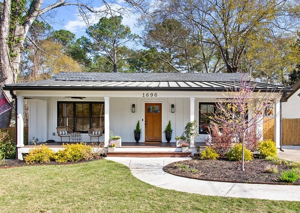Totally Renovated Modern Farmhouse! Perfectly positioned on a tree-lined street, STEPS from East Atlanta Village, this gorgeous home was renovated down to the studs in 2018, including a NEW HVAC, Electrical, Plumbing, and Tankless Water Heater. A Rocking Chair Front Porch welcomes you into a Flowing Open Floorplan. White Oak Floors and Vaulted Ceilings frame a sun-soaked Family Room with Fireplace and Built-In Cabinetry. A Bright, Central Dining Room overlooks a Show-Stopping Kitchen with Stainless Steel Appliances, Quartz Countertops, Island Breakfast Bar, and Direct Backyard Access. Unwind in the Owner's Suite with Custom Walk-In Closet and Spa-Style Bathroom featuring Dual Marble Vanity, Soaking Tub, and Rainfall Shower. Two Additional Bedrooms share a Hall Bathroom. Outside, a Large Deck overlooks a Fully Fenced Backyard, prime for pets or play. Only a short stroll to East Atlanta Village Shops, Restaurants, and Nightlife. Zoned for Burgess-Peterson Academy.