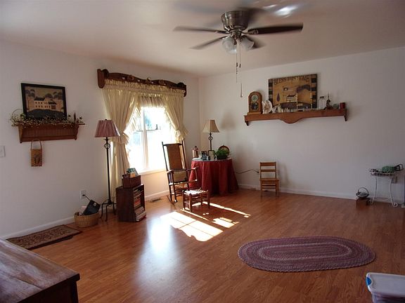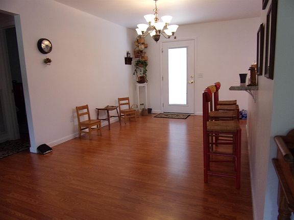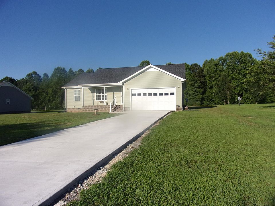 Charming, clean, nearly brand new ranch home with rocking chair front porch in a quiet neighborhood, dead end road. Spacious great room and dining area, galley kitchen shares an island with dining area. Master suite with walk in closet. Large laundry room, and 2 car garage with added storage shelves. High-quality laminate flooring throughout. Dining area opens to deck. Concrete driveway, large level lot with lots of room for children, fur babies or to add a garden! Just minutes from town.