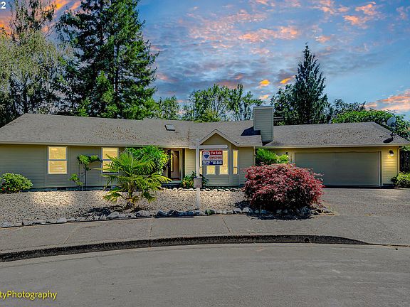 Great one level 3 bedroom 2.5 bath home on a cul-de-sac lot. Popular open floorplan with vaults. It's always sunny in a sunroom, adding warmth throughout the home. Sale includes refrigerator, washer, and dryer. Located close to shopping, schools, and Linfield. The low maintenance yard with over 13,000 SF has loads of options.