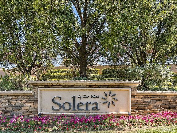 Welcome to this desirable gated community of Solera, exclusively designed for individuals 55+. Situated on a premium corner lot, this impeccable home boasts the sought-after Emerald floorplan, ensuring a comfortable living experience. Step inside and be prepared to be impressed by the upgrades this home offers such as crown molding, and wood shutters throughout the home. The owner’s suite is nuzzled at the back of the home offering a view of the tree lined golf course, and has an oversized walk-in closet, private water closet, dual sink vanity, separate shower, and soaking tub. The guest jr. suite is complete with its own bathroom and walk-in closet. Next to the additional ½ bathroom is the double-door office that provides a quiet and dedicated area or an additional bedroom. The family room is the essence of comfort, offering a built-in entertainment center and fireplace, making it a cozy and inviting atmosphere. The flooring throughout the home is a combination of tile and luxury vinyl plank, adding a touch of elegance with low-maintenance living. The kitchen features deep pull-out drawers, quartz countertops, designer backsplash, dual ovens, upscale finishes, and appliances, and a convenient breakfast bar island. The separate laundry room off the kitchen includes a washer, dryer and sink, making laundry days a breeze. The open concept design enhances the spaciousness and creates a seamless flow allowing for effortless entertaining. Bridge the threshold between the interior and exterior of the home through the French doors and step into an enchanting vista that extends into two covered patios, creating an inviting symphony of space and tranquility. Enjoy the soothing sound of cascading water emanating from the built-in waterfall fountain. With ample room for seating and relaxation, these patios become your private sanctuaries, where time slows down. Whether you're savoring a moment of solitude, hosting a gathering, or simply admiring the beauty of your surroundings, this space elevates the concept of living to an entirely new level. The epoxied floored garage has direct access into the home and the 3rd stall is ideal for a golf-cart. The serene neighborhood and sense of camaraderie make this a delightful place to call home. Whether you're seeking peaceful solitude or engaging social activities, Solera has it all. Don't miss out on the opportunity to call this gem your own. Come experience the Solera lifestyle and all it has to offer.