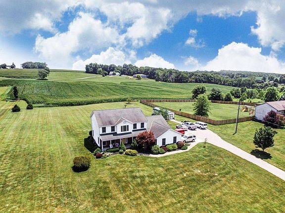 Presenting a custom built country estate on 2.59 acres just outside charming Fredericktown. Only 25 minutes to the rapidly developing Sunbury exchange off I-71, and 30 minutes to Polaris. This spacious 4-5 bedroom, 3.5 bath home features a large family room with fireplace off the deluxe kitchen, 4 season room, formal living and dining rooms, laundry room, half bath, and office. The upper level has a spacious owner's suite with large walk-in closet and jetted tub, and 3 additional roomy bedrooms. The lower level has a finished Man Cave, a full bathroom with walk-in shower, and unfinished storage space. The exterior is country living at it's best. The home sits back off the main road with a tree-lined lane leading to the 3 car side load garage, and a 12x36 deluxe out-building with electric.