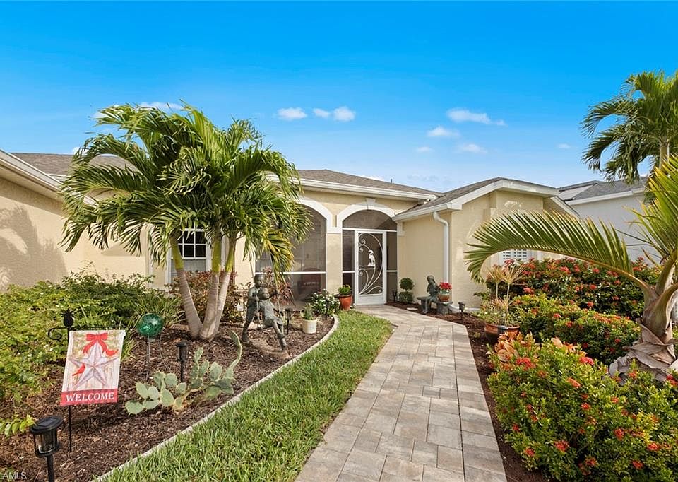 Experience the epitome of SWFlorida living in this exclusive Colony Lakes pool home. This 3-bed, 2-bath gem, perched on a premium lakeside lot, has undergone a stunning transformation with remarkable upgrades. The fully remodeled kitchen and baths showcase modern elegance and functionality. The kitchen, adorned with pristine white cabinetry and stainless-steel appliances, harmonizes seamlessly with the luxuriously upgraded bathrooms, creating a stylish and comfortable ambiance. Additional enhancements include a paver drive & walkway that add sophistication to the exterior, while plantation shutters throughout offer classic charm and privacy control. A durable shingle roof and thoughtfully landscaped surroundings further elevate the property's appeal. The master bedroom, boasts an ensuite bathroom with two walk-in Closets by Design, dual sinks, a separate shower, and a garden tub for relaxation. Effortlessly host grand-scale gatherings as sliding glass doors seamlessly connect to a captivating outdoor living area, providing ample space for entertainment. Ideally situated near top beaches, shopping, and restaurants, this residence offers a lifestyle of luxury and convenience.