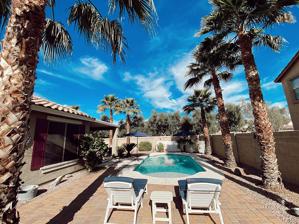 What a find! Exceptional clean home with almost no outside maintenance! Homes like this do not come up for rent often. 3 bedrooms( the 3rd bedroom is the den option)2 baths. There is also an option to rent furnished. Pool does have a heater! Garage does have storage cabinets. If you have any questions please give me a call.Thanks