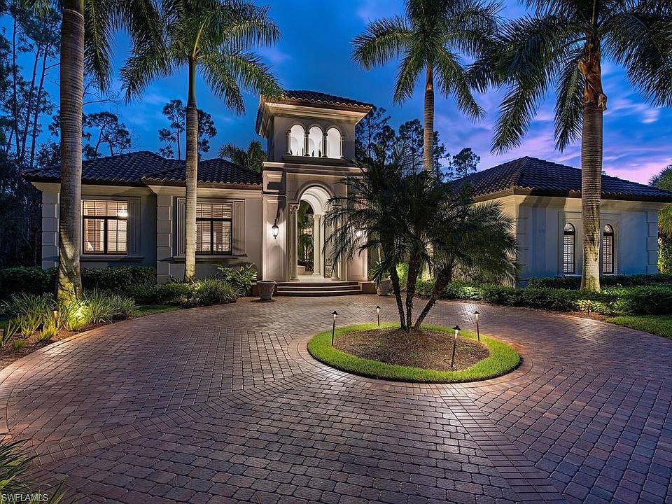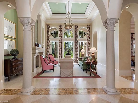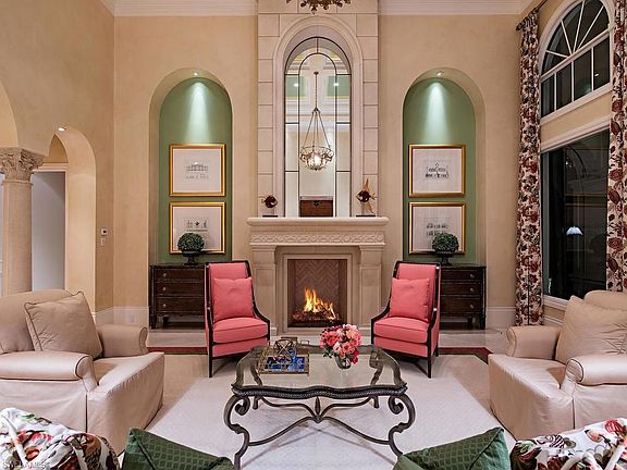 Extraordinary 4 bedroom + den, 4 full bath and 2 half bath estate boasts magnificent views from the oversized lot, including double fairway views of the Tom Fazio Championship Designed North Course. This breathtaking estate features amazing designer elements including volume and tray ceilings with intricate detailing, crown moldings, expansive windows, faux finishing, arched passageways, intricate columns, gorgeous granite countertops & French doors. Other exquisite features of this elaborate home include a wine cellar, wet bar, impressive movie theater/entertainment area with 98 inch flat screen 4K led TV, fully automated lighting system, remarkable exterior lighting, 2 sparkling water fountains, 4 separate private patios, a courtyard & incomparable southwestern views from the outdoor lanai with a relaxing pool and spa. Guests will enjoy the private cabana with morning kitchen amenities. This home combines the perfect balance of technology, comfort and luxury in tropical paradise.