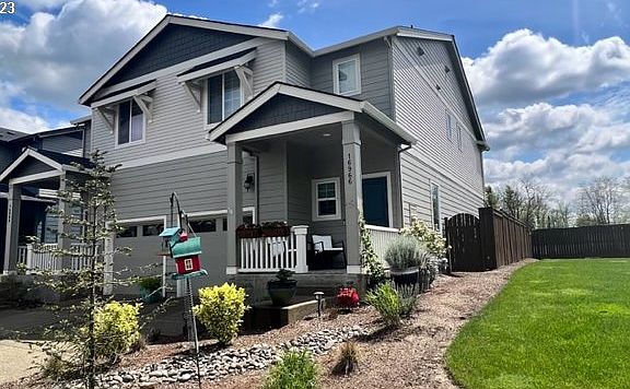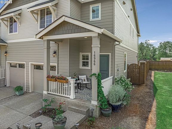 Welcome to this Happy Valley duplex-style townhome with incredible surroundings! This beautiful property, built in 2020, offers a modern and spacious living experience. With 3 bedrooms, 2.5 bathrooms, and an upstairs loft area, it provides ample space for comfortable living. Upon entering, you'll be greeted by an open concept floor plan that seamlessly connects the main living areas. The kitchen boasts stainless steel appliances and quartz countertops, combining style and functionality. The backyard is a true oasis, with $10,000 spent on upgrades. It features a large Trex deck, raised beds, artificial grass, lighting, a retaining wall, and planters. The deck is perfect for entertaining and enjoying the spring and summer months. The raised garden beds offer convenience and comfort for gardening enthusiasts. This townhome is equipped with smart home features that include a camera doorbell with microphone and speaker, a thermostat, a keypad/front door lock that can be controlled via phone, a front porch light, and a garage door that can be remotely operated through an app. The neighborhood itself is highly desirable, characterized by its peaceful atmosphere and residents who enjoy morning and evening walks. There are two dog parks within three blocks, catering to both large and small dogs. Additionally, two playgrounds are nearby, one of which is located across from the dog park. The manicured landscaping is meticulously maintained by a professional crew on a weekly basis. The neighborhood also offers fantastic walking trails, providing paved and level paths for enjoyable strolls. With its ideal location, this townhome is situated at the end of the street and adjacent to greenspace, ensuring privacy and beautiful views from every window. Recent improvements include an AC system, remote control curtains for the stairwell windows, and a garden shed. Don't miss the opportunity to own this stunning townhome in Happy Valley. Open Houses on SAT/SUN May 27th & 28th 1-3pm