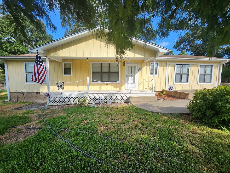 Awesome water views, located on penensula at Lake Tyler East. Three bedroom two bath house with seperate two care garge, fenced back yard and propane stove and lines in den and garage. Kitchen has two corner lazy susans and some pull out shelves for convenience. There is plenty of space in the laundry room for surplus supplies, plus bonus room off dining room that was used as small office. Front porch is perfect for morning coffee. Plus, plenty of parking for visitors. Private water access at boat ramp off of Perry Rd.
