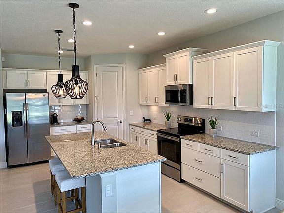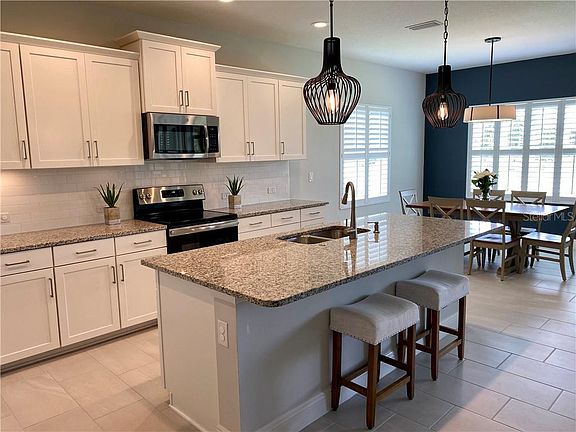 - Interior Features: Ceiling Fans(s), High Ceiling(s), Stone Counters, Walk-In Closet(s), Solid Wood Cabinets, Kitchen/Family Room Combo, Solid Surface Counters, Window Treatments, Tray Ceiling(s)