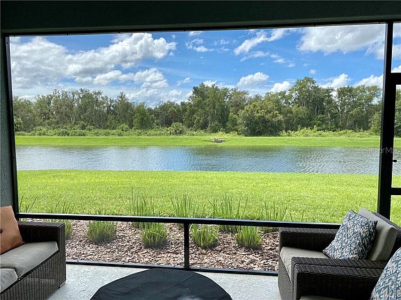 Enjoy panoramic water and preserve views with this like-new home located at the heart of Parrish, in Neal Communities' River's Reach. At only 1 year old, this immaculate 3 bedroom, 3 bathroom home also features a flex space that could be a home office, additional living room or a den. The third bedroom has a full en-suite bathroom, creating a private space, perfect for overnight guests or as an in-law suite. As you enter, views of the rear lake and preserve are immediately apparent through your coffered vestibule, leading to an open, functional living room, kitchen and dining room space, making entertaining or living effortless. Enjoy the same open views from your master suite, in the rear of the home, that also contains his and hers walk-in closets, and leads to the en-suite bathroom that has a true walk-in shower and plenty of vanity space. The kitchen boasts stainless appliances, granite counters, plenty of wood shaker cabinets, subway tile backsplash, a walk-in pantry and an oversized island that makes casual dining or food prep a joy, with your private views present from every angle. Outside, enjoy plenty of screened patio space, with custom screens designed to maximize your sight lines. Upgraded porcelain tile throughout has just been stained and sealed and shows like a brand new floor. All bathrooms have solid surface counters, wood cabinets and upgraded fixtures. Custom lighting, 8 ft doors, tray ceilings and wooden plantation shutters throughout add to the value available. Convenient to east and west County, in an A rated school district, River's Reach is perfectly located off the growing Rye Rd and offers gated access, playground, walking trails, community pool and access to the Manatee River. Compare this home to any new build in the area, you will quickly see how rare this view really is. Come see this gem and fall in love, you will not be disappointed!