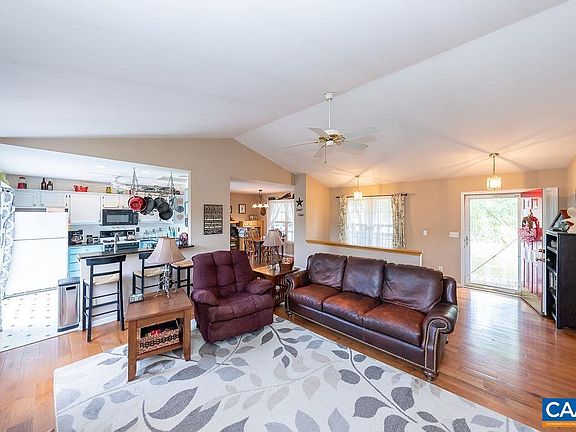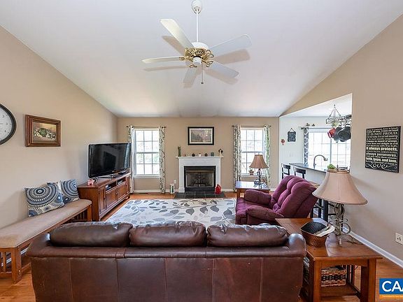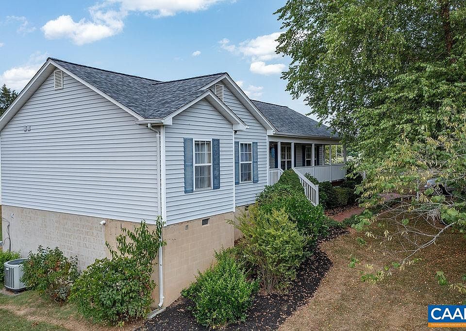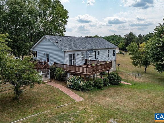 Ranch style home in a country setting! This property boasts welcoming great room upon entry with vaulted ceilings, a fireplace, sliding door to the large rear deck and breakfast bar overlooking the kitchen. The kitchen features a gas range, painted cabinets and granite countertops. Hardwood floors throughout the main level. Ample sized master with en-suite bath and walk-in closet. Downstairs, there is plenty of extra living space and storage room. Newly updated half bath. Walk out to the rear yard. Outside, enjoy the fenced yard, pastoral views, garden space and fruit trees. Two car carport with a workbench, electric and additional storage. Firefly internet coming this summer! Great location near Interstate 64 and Zions Crossroads.