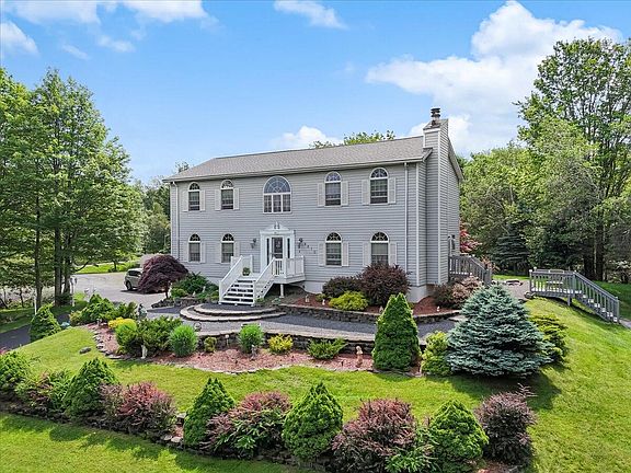 Discover refined living in this stately 4-bedroom, 2.5-bath Center Hall Colonial, gracefully situated on beautifully landscaped grounds. This exceptional property features a heated in-ground pool with a dedicated electric panel, for cost efficiency, multiple landscaped waterfalls, features, a tranquil koi pond, and meticulously maintained gardens—creating a true backyard sanctuary.