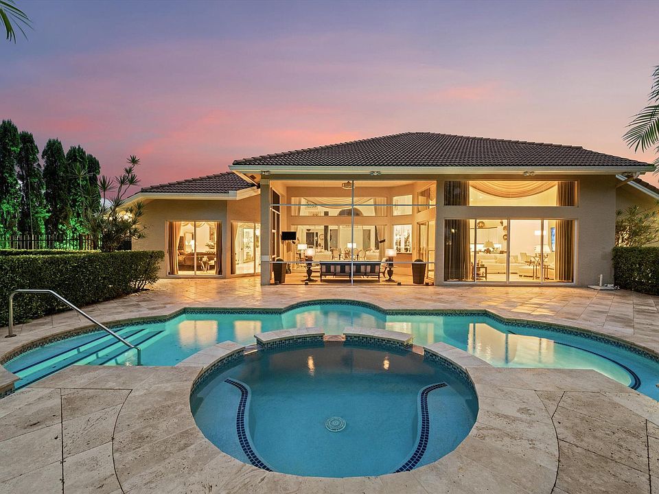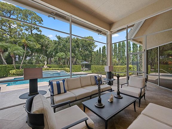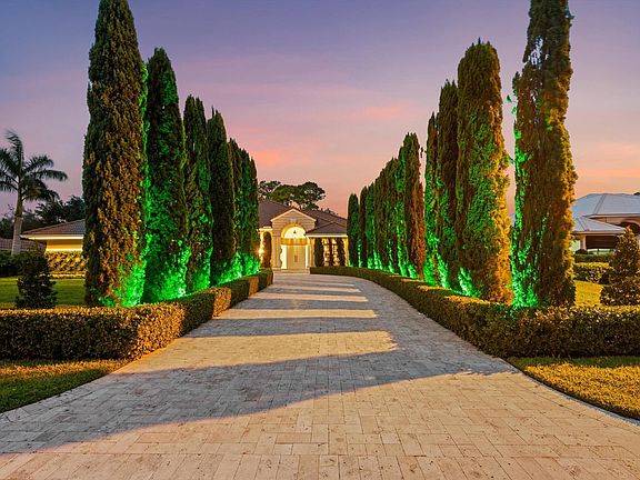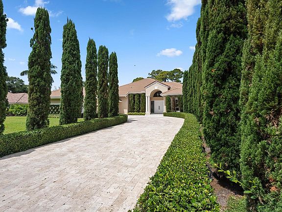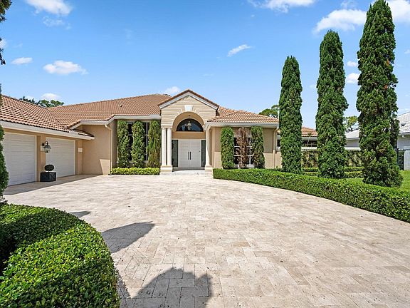 Elegantly renovated Breakers West Estate home offers timeless luxury with this 3-Bedroom + Office + Flex Room, 3.5-Baths and full 3-Car Garage in 3,489 sq ft of air-conditioned living space (4,622 total sq ft). This home is a rare blend of elegance and privacy in the prestigious, guard-gated community of Breakers West. Positioned on a lush, 1/2 acre fenced lot overlooking Mayacoo Lakes Golf Course's manicured fairway, the cypress tree-lined driveway and motor court have been updated to marble stone pavers and extend into the oversized 3 car garage(w/hurricane impact doors). Once inside you'll be impressed by the Living and Dining Room with its 16 ft smooth ceilings and 8ft sliding doors with 4 ft transom windows above in both the Living and Family Rooms offer a picture perfect view