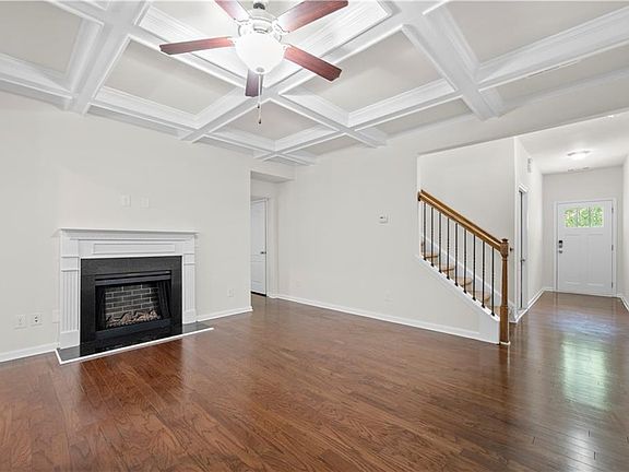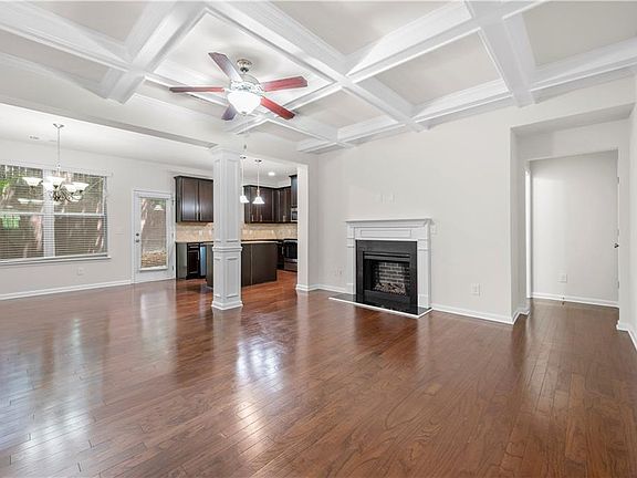 Welcome to this charming two-story home that blends comfort, style, and convenience. The spacious family room features coffered ceilings and an electric fireplace, creating a warm focal point for relaxing or entertaining. A decorative column offers a subtle division from the dining area, keeping the space open yet inviting. Hardwood floors and 9-foot ceilings throughout the main level add elegance & flow. The kitchen is designed for both everyday living and hosting, with a large center island, walk-in pantry, double sink, and abundant counter space. Upstairs, the primary suite provides a private retreat with a cozy sitting area, expansive walk-in closet, and spa-style bath complete with dual vanities, tiled flooring, soaking tub, and separate shower. Fresh interior paint throughout gives the home a move-in ready feel. Set within a quiet, well-maintained community, this stone and brick home offers both peace and convenience—just minutes from shopping, dining, and less than 10 minutes to Stone Mountain Park. With easy access to Hwy 78, you’ll enjoy a quick commute while still feeling tucked away.