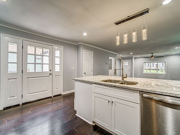 - Kitchen Features: Breakfast Bar, View to Family Room, Stone Counters, Kitchen Island, Cabinets White