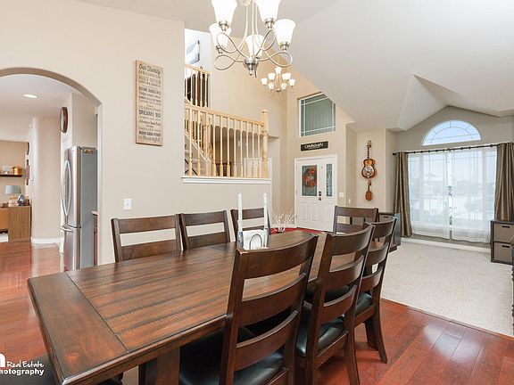 Newer home featuring great outdoor entertaining area; custom fire pit, large deck plumbed with gas for bbq and hot tub. Kitchen has solid countertops $ stainless appliances. Full Master suite has private bath with double vanity, soaking tub, and separate shower. Vaulted ceilings through living room & formal dining. HUGE 80 foot paved boat/RV parking. Backs to greenbelt, with no neighbors.