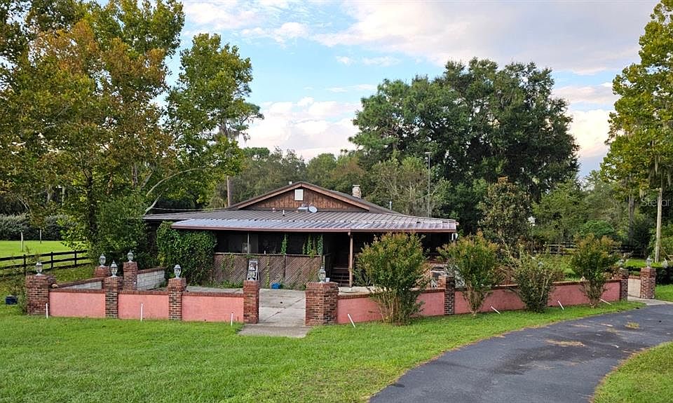 Auction Property. ONLINE AUCTION ENDS NOV. 14 AT 2 PM ET. PRICE DETERMINED AT AUCTION, Subject to auction terms. This 4.4± acre mini farm located near the Ocala National Forest and the Ocklawaha River offers versatility, featuring several barns and outbuildings previously used for raising horses, storing collector vehicles, and contractor storage. The main 3 bedroom and 2 bathroom with den home is 3,088± sf ur with 2,800± sf la with cypress and cedar throughout, cathedral ceilings, and a large veranda, creating a rustic, lodge like feel. Inside, a fireplace is framed by two large windows, and the main living area includes wrap around windows that provide natural light and scenic views. While this peaceful setting feels worlds away from the hustle and bustle, the small town center of Fort McCoy is just 15± minutes away from the property, offering essential amenities without sacrificing privacy. This property is ideal for anyone looking to escape into nature while still having internet access to enjoy a perfect blend of country living and practicality. Surrounded by nature, this property is a retreat for those who to prefer ditch the rules and manage their own land. Mini-farm retreat with rustic lodge, horse stalls, A/C garage, and spacious outbuildings. Fenced, cross-fenced with round pen and garden-ready raised irrigation. Private electronic gate entry with paved drive to home, barn, and buildings. 4.4± acres of agricultural-zoned land. Close to Rodman Reservoir, enjoy world-class bass fishing, where trophy-sized largemouth bass are abundant, ideal for kayaking and bird-watching enthusiasts. Decorative brickwork includes side entry ramp, entry pillars, veranda pillars, and front entry dramatic triple staircase. No HOA restrictions, enjoy freedom to modify your property, have greater privacy and independence—ideal for those seeking flexibility and autonomy. Spacious and open gourmet kitchen with ample storage and a combination of butcher block and granite countertops. Features high-end Viking gas appliances, making it perfect for culinary enthusiasts and entertaining guests. Stylish granite topped bar in the living room installed across from the fireplace, perfect for entertaining and cozy evenings. Bathroom features black granite surfaces, a Roman tub, stand-up shower, and mirrored ceilings, creating a striking and luxurious atmosphere. Walk-in bathtub features an easy access door, built-in seat, and grab bars for a safe and comfortable bathing experience. One barn has a section with air conditioning that stored collectible vehicles. Generac generator with propane tank plus connection to the house for cooking and hot water, power to outbuildings, and 2 wells. Rodman Reservoir boat ramp, which is located near Lake Ocklawaha offers convenient access to boating and fishing activities, making it ideal for those interested in water sports and enjoying the outdoors in the Ocala National Forest area. Nearby grocery store, small pub, and thrift shop for convenience. Access to secluded trails and hunting opportunities. Enjoy hiking, hunting, camping, off-roading, and exploring scenic trails in Florida's beautiful natural landscape. Property #: DG1442. Bid online November 4 - 14. Price determined at auction. 10% Buyer's Premium.