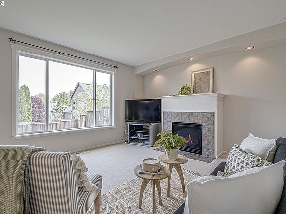 This freshly painted home offers an inviting and vibrant living space awaiting your personal style. Cozy up to the gas fireplace on chilly evenings or relax on the covered patio at the end of your day. The primary bedroom features a walk-in closet, new shower, soaking tub and new ceiling fan. Home is pre-wired for surround sound and AC ready. New interior paint, exterior paint just a year old, newer water heater, roof certified. The convenience of included appliances-refrigerator, washer, dryer and free-standing microwave makes moving in a breeze. Easy commute to Nike, Intel, shopping, restaurants, and Hwy 26. Seller providing two-year basic home warranty for new owner. OPEN HOUSE 4/27 12-2pm.