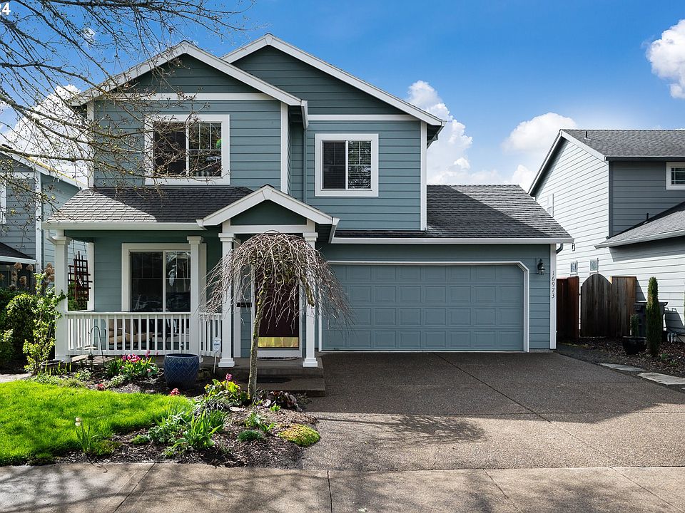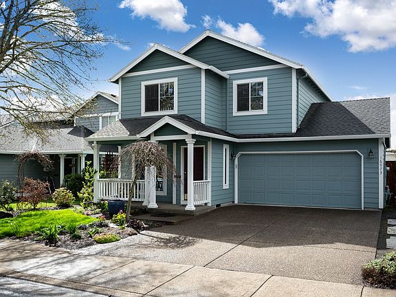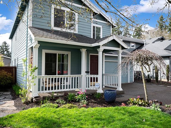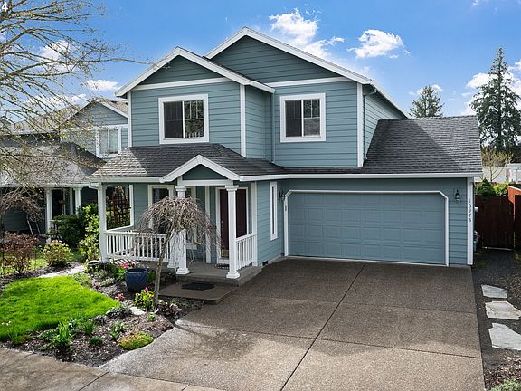 Wonderful 4 bedroom 2 1/2 bath home in a great location. Warm interior color palette with open concept family, dining and kitchen. Spacious primary bedroom with coved ceiling, walk in closet, bath with dual sinks and water closet. Kitchen features a pantry and eating bar, refrigerator included. Light and bright bathrooms with skylights. Additional features include an upper level laundry room with storage, and a quaint front covered porch. Extensive hardscape and gorgeous landscaping with drip system, sprinklers and a water feature. Updates include exterior paint, fencing with steel posts, tankless water heater, garbage disposal. Ideal location, convenient to Hwy 99, 217, I-5, I-205, Bridgeport Village, and Cook Park. $10K buyers credit at closing with acceptable offer. Home warranty included. No HOA.