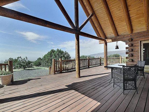 Beautiful log home on 2 acres with Fantastic views of the San Juan Mountain Range to the south, West Elks to the east, and the Beautiful Grand Mesa to the north. The amenities that are offered are too numerous to mention such as a solar system that is grid tied 1.95 kw PV electric system with battery backup and solar thermal system for domestic hot water and radiant under-floor heat. There is also an electric car charging station at this home. The full depiction of the systems will be on associated docs. This lovely home has 2 spacious bedrooms 2 and 1/2 baths with granite countertops and newer appliances. Spacious wood deck in the back of home to enjoy the evening sunsets and views galore.