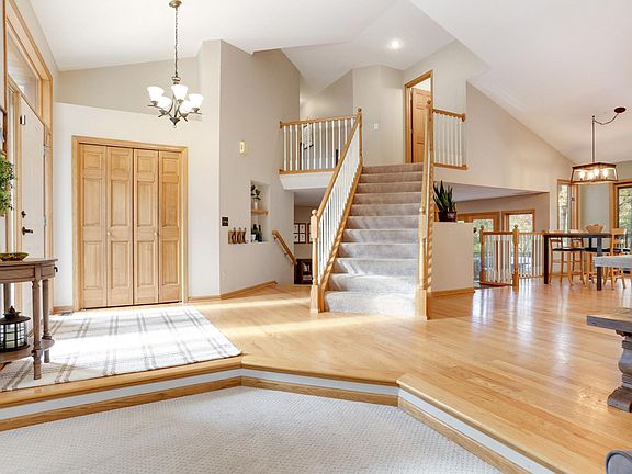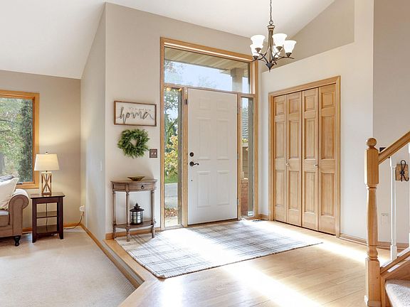 Have you been unimpressed with seeing the same cookie cutter homes and floor plans with undesirable lots? Well, this one is different. Homes with this level of privacy while being so centrally located are a rarity in Lakeville, especially at this price point! Huge vaulted ceilings on main level and in the primary bedroom! Solid hardwood floors throughout main level and quality throughout the home that is just not found in newer homes. Solid woodwork & solid panel doors. Lower level is the perfect work from home area, future game room, exercise room, or space for whatever hobbies you or your family have! There's equity opportunity with unfinished space and a roughed in bathroom in the lower! Escape to your brand new maintenance-free deck and enjoy your 'Up North' backyard which backs to a shallow pond! Hockey family?! This pond would make for the perfect skating rink. Move in before the holidays and enjoy it this winter!!