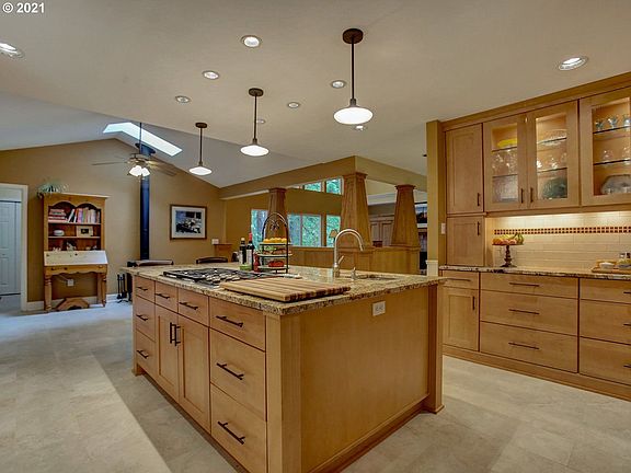 Gorgeous home tucked in the fir trees. Newer kitchen w/ granite countertops, maple cabinets, stainless steel appliances (Wolf, Miele & Bosch), two sinks & two dishwashers. Owner's suite & laundry on main level. Stunning hardwoods, heated tile, recently updated bathrooms, sunroom, hobby room, built-in book shelves, high ceilings, finished basement w/ full bath and plumbed for kitchenette. Garden beds, fruit trees, hot tub & large deck to enjoy the peaceful environment. Workshop w Tons of storage!