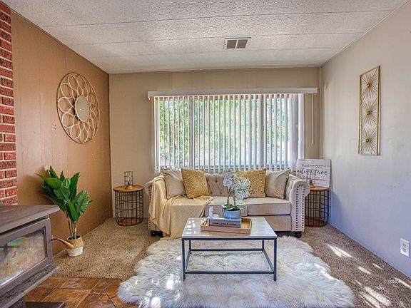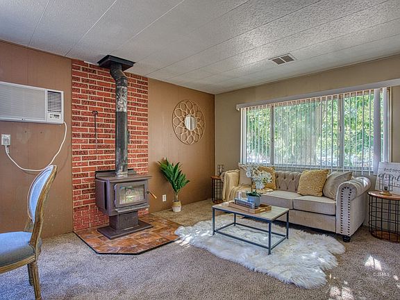 YOU OWN THE LAND, NOT IN A PARK Freshly Painted Outside.. Large 3 bed 2 bath with huge enclosed patio and a large flat usable fenced lot. Garage is behind the house. Roof is newer and the lot has a few large shade trees. There is a nice wood stove and refrigerated cooling as well as evaporative cooling. Heating is from the wood stove and the dual packs