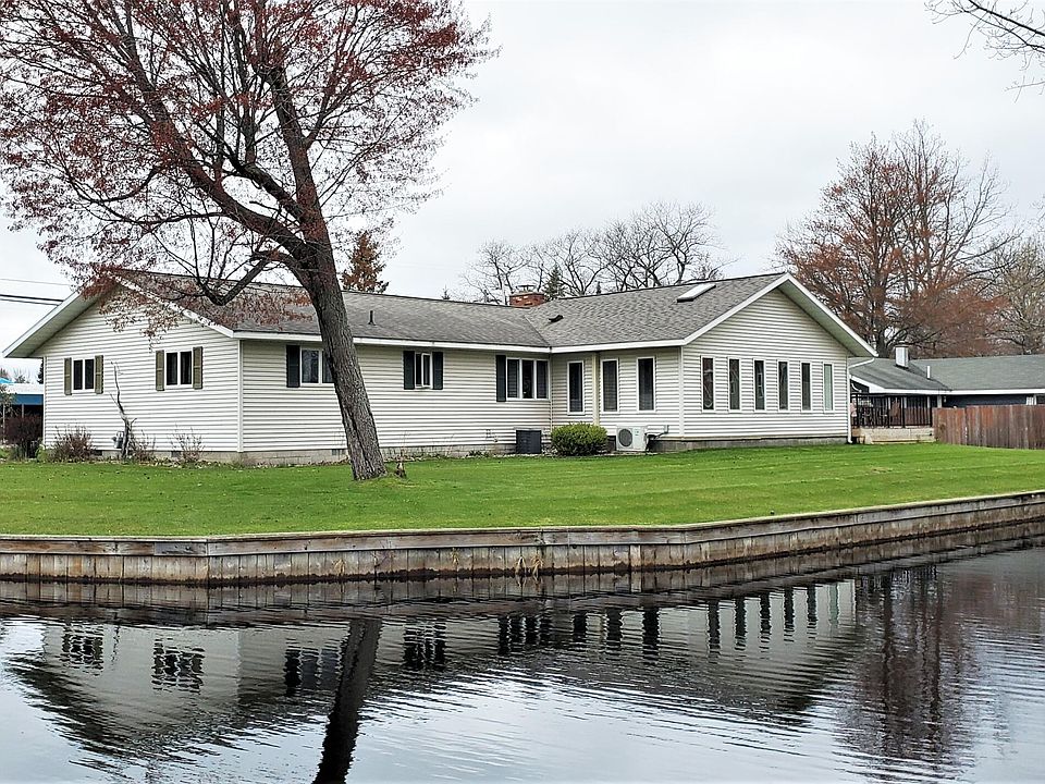 This beautifully updated 2400 sq ft sprawling ranch home has water views from every room. Built on a little less than 1/2 acre, this move-in ready house has approximately 179’ of canal frontage with a completely rebuilt sea wall in 2012 with access to Houghton Lake for smaller speed boats, fishing boats, canoes and kayaks. Marina directly across the street offers boat slips for larger boats as well as a boat ramp for added convenience in launching your boat locally. Additional lake privileges at LaMona Beach are just a short distance away to swim and picnic. Enjoy 3 spacious bedrooms plus a 30’ x 15’ knotty pine family room with separate entrance, which could be a fourth bedroom. The light-filled front room has a gas fireplace and a large 17 x 20 formal dining room could be another family room, as the updated kitchen has plenty of space for a dining table and barstools along the counter. Additional storage can be found in the kitchen pantry closet, large laundry room attached 25’ x 26’ oversize garage and storage shed. Many updates include new Wall oven 2021, updated bathrooms with new tile in 2021, new waterproof, high-end vinyl plank flooring in 2020, new high-efficiency furnace in 2018, new 16 x 16 deck, new hot water heater in 2014 and a new 393’ well in 2016. Also, Anderson windows, Pex plumbing throughout the crawlspace and a well-maintained sprinkler system make this a maintenance free home. The house is on a dry 36” crawl with easy access for all maintenance and storage. The circular driveway and extra parking make the house perfect for large gatherings. Don’t miss out on the spacious, year-round, one of a kind home.
