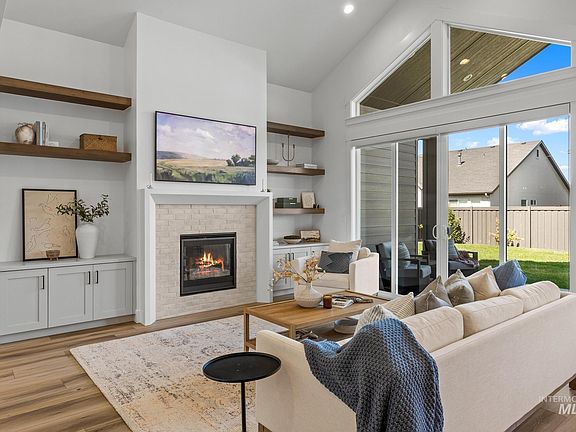 Exceptionally designed with timeless style, comfort and practicality, this single level home features three spacious bedrooms and two and a half baths. With the perfect combination of a like new home (without the wait) and the incredible location, you have found what you're looking for. Large windows and vaulted ceilings let in the natural light and the fireplace is ready for cozy season. Featuring Bosch appliances, a walk in pantry and plenty of storage, this open concept great room is well designed for effortless entertaining and everyday living. With its functional design and seamless flow, this home is ideal for those seeking both convenience and modern elegance in a single-level home. Located a few doors down from the community pool and park, and a short walk to a K-12 charter school, a preschool coming soon, Discovery Park, Meridian Library and soon to be Costco- it doesn't get more convenient for recreation and a well balanced lifestyle.