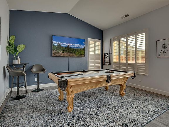 Charming Designer-Furnished House with Stunning Mountain Views, Centrally Located Near Area Attractions: This modern and charming house, with breathtaking mountain views, has been recently updated with new paint, wood flooring, a redesigned backyard, a pool table, and stylish decor. The master suite features a luxurious king bed, sofa, TV, and an ensuite bath with his & her sinks, a soaking tub, a large shower, and a spacious walk-in closet. Two more bedrooms are located on the second level, each with queen beds and TVs, and there is an additional bedroom on the first level with a queen bed and a full bath. The loft area includes a sofabed that can serve as the fifth bedroom. *The Space* This spacious house, filled with natural light, is nestled in the heart of the Double Diamond area of Reno! Boasting 3240 sq ft, this million-dollar home offers four bedrooms plus a loft and three bathrooms. The oversized living areas and open kitchen feature Silestone counters, maple cabinets, and double ovens, providing ample space for everyone. The full bedroom and bathroom on the ground floor add convenience for guests. Relax and play in the large patio and backyard. *Guest Access* Situated in a modern residential neighborhood with a kids' playground nearby, the house offers beautiful landscapes as you drive in. Parking is available in our large driveway or in the garage. Entry to the house is via self check-in SmartLock. *Other Things to Note* Conveniently located: - 25 minutes to Mt. Rose Ski area - 35 minutes to Lake Tahoe - 25 minutes to Virginia City - 30 minutes to Carson City - 15 minutes to Downtown Reno - 15 minutes to downtown Sparks The area features numerous parks, sidewalks, and walking paths, perfect for leisurely strolls. For the more adventurous, there are plenty of hiking trails within 15 minutes. 1 month rent is due at signing. Renter pays for Water, Gas, Electricity, Internet and yard maintenance. Selected non-allergic small dogs (under 20 pounds) allwoed. No smoking allowed. Cleaning fee at the end is $400 (add $200 to the cleaning for any pets).