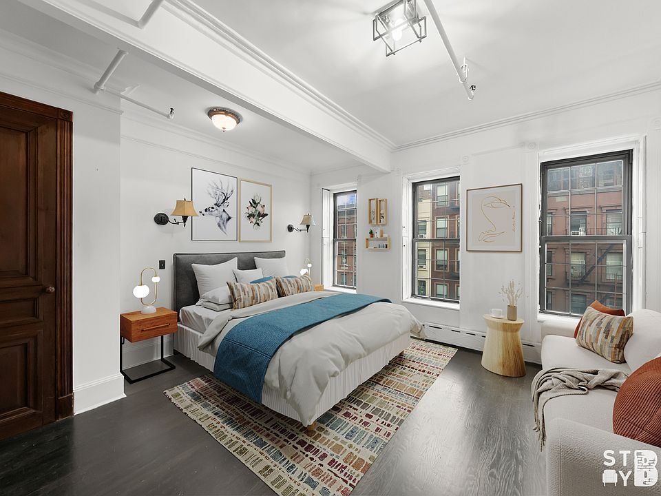 Original brownstone detailLots of lightGorgeous bathroomAir conditioningDecorative fire placeHardwood floors
