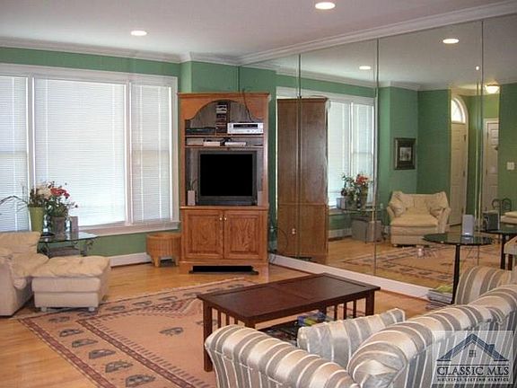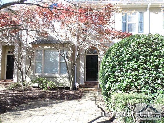 Hands down one of the best locations in Athens. First unit listed in years! End unit withCharleston style patio with stone pavers and wrought iron accents. Enter through the foyer to bright and sunny Great Room and hardwood floors. Functional floor plan with open great room, dining area and kitchen. Tile entry to covered deck off rear of unit. Upstairs you will find the Master Bedroom with huge walk in closet. Master Bath has tile floors, double vanities, large tub and separate shower. Large second bedroom with tub/shower combo and single vanity. Laundry area and large linen closet complete the space. Stairway to second entrance and garage also lead to possible third bedroom, office, small game room or storage. Don't miss this rare opportunity and great location within walking distance to University of Georgia Campus,Sanford Stadium, Stegman Coliseum, Foley Field, dining and shopping in Five Points.
