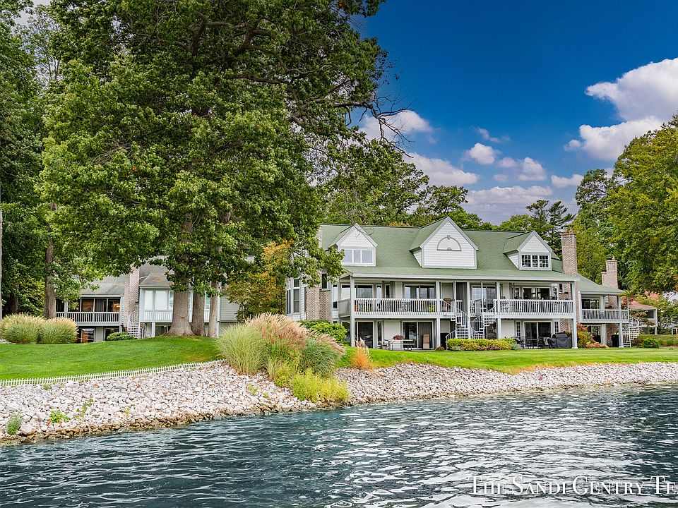Stunning Veit's Landing Condo overlooking Spring Lake. Recently remodeled, this condo boasts beautiful hardwood floors throughout the entire main level and a spacious kitchen with Cambria countertops and stainless steel appliances. 2 separate dining areas to entertain family and friends. The living room features a gas-log fireplace and sliders leading to the screened deck with amazing views of Spring Lake. The primary suite has its own private deck access and spa-like ensuite featuring a walk-in tiled shower and soaking tub. Beautiful office with built-ins, a half bath and laundry room complete the main level. The walkout lower level offers more living space with a large family room with wood burning fireplace, bedroom with sliders to the patio, full bath, and double doors lead to another bedroom with additional sitting area. Enjoy the Association tennis courts, and boat docks are available to purchase separately.