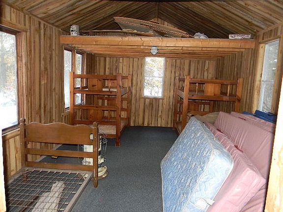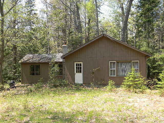 Nicely wooded 10 acres with a cabin. The cabin is 806 sq ft in size. There are two rooms 1 large open room with kitchen/living area and then one large bedroom.The property is high rolling ground. Year round access and the road is also the snowmobile trail in the winter. Parcel is located just south of the East/West Road. Great parcel for hunting with a lots of deer sign in the woods.
