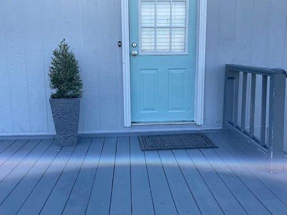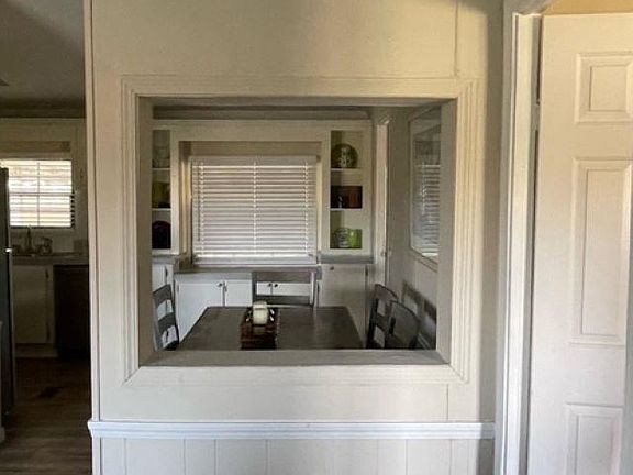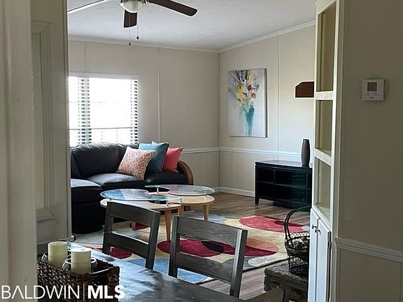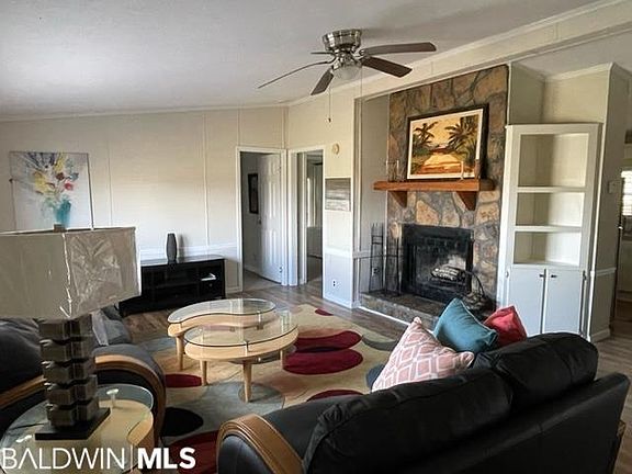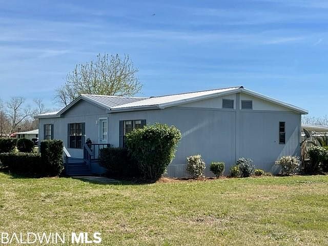 Cute home with nice curb appeal! Inside is neat and tidy with evidence of Pride of Ownership. Spacious Living Room has nice rock fireplace with chunky mantel. Dining Area is convenient to the Kitchen with white cabinets and additional storage cabinets. Laminate wood flooring throughout most of the home and windows that let the sun shine in. Primary Bedroom has double windows and en suite bathroom with soaking tub and separate shower. 2nd & 3rd bedrooms have carpet and ceiling fans. Hall Bathroom has tub/shower combo. Mudroom and lots of storage nooks. Screened in patio and covered carport. Home is located across from J. Larry Newton School. [Mobile Home on metal frame with wood siding per seller]