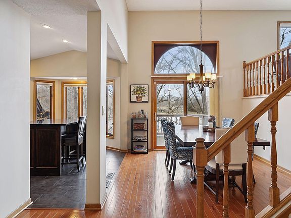 Welcome to this picturesque retreat at the end of a cul-de-sac with extraordinary views of Blind Lake. Windows flood the interior with natural light, creating a bright and inviting atmosphere. This home features ample entertaining areas both indoors and outdoors. The kitchen features a center island, abundant storage options, and Cambria countertops, combining both functionality and style. There are two living areas, each anchored with a cozy brick fireplace. Spacious primary bedroom with updated private ensuite. This home has great flow and spaces adding flexibility to the floorplan. Walking distance to parks, nature preserves, and the Ponds Athletic Complex. Don't miss the opportunity to own this serene oasis.