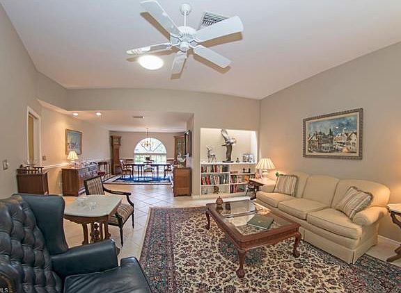 This beautiful and updated estate home provides 3 bedrooms + den, 3.5 baths and 2,877 sq. ft. of air-conditioned living area, and is newly painted, inside and out. The popular floor plan offers an 18' x 15' living room with built-in bookshelves, a 14' x 10' dining room and 22' x 16' family room with 10' cathedral ceiling and elegant built-ins. The heated pool & spa w/waterfall was recently refurbished from top to bottom, including total resurfacing, brick paver deck and new pool pump. Newer AC systems, motorized hurricane shutters, plantation shutters, walk-in Master bath shower, front gutters and a home security system. The kitchen is a chef's delight, with granite counters and stainless steel appliances ... new dishwasher, newer fridge, stove & microwave. You can feel extra secure as this residence sits on a high and dry lot .... 11' above sea level. The Forest has low homeowner fees of just $1,074 per year, with lighted sidewalks, a children's park and is guard-gated and patrolled. Membership to the Club is optional. The Forest is conveniently located just west of US 41, with quick access to RSW International Airport, restaurants, shopping and our beautiful white sandy beaches.