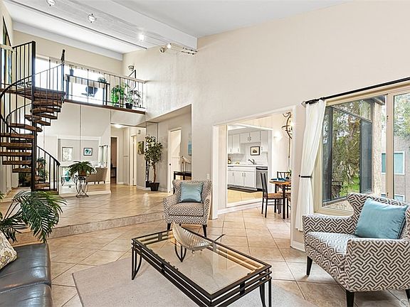 This corner home overlooks the lush greenbelt with a short walk to the ocean shore and Huntington Beach bay areas in the desirable Sea Harbour community, as you walk into the warm and inviting home you'll be greeted with a large spacious living room with a cozy fireplace, neutral tile flooring and high vaulted ceilings, home is light and bright with a wonderful ocean breeze, the spacious kitchen is light and white with stainless steel appliances including gas stove/oven and dishwasher, recessed lighting and open to the dining room and living room! The living square footage has been increased with the front balcony enclosed and is now the window lined dining room overlooking the greenbelt (square footage may be more than the listed 891). The bathroom has upgraded sink/vanity with tile surround shower over bathtub, newer fixtures, and tile flooring. This home has a lot of storage and closets with mirrored wardrobe doors in the bedroom and in the loft area. The spiral staircase leads up to the loft that can be an office or bedroom with its own private balcony. The community fees includes Pool, Spa, Clubhouse, Gym, Tennis Courts, Greenbelts, Cable TV, Water, Trash and Sewer! This home is located near the pool, greenbelt, Huntington Harbor and all the water sports, close to restaurants, beaches, bays, and shopping!