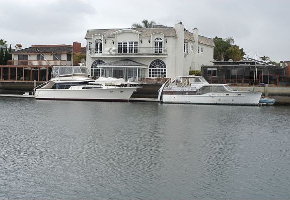 This is a 6000 sq. ft. water-front home in Huntington Harbor with a Grand entry hallway, a panoramic view of a wide channel from most rooms, and a sunroom and patio by the water. This magnificent house features six bedrooms, eight bathrooms, two wet bars, three fire places, and balconies overlooking water and 60 feet boat dock, and the front of the house, providing a view of the beautiful neighborhood. The master bedroom features two full bathrooms with a Jacuzzi tub overlooking the water, a bidet, and large picture windows; a king size bed, and large sitting area, also overlooking the wide channel! All bed rooms are large size except one which is small and have attached bath rooms. There are two decorative sky lights, high ceilings, spiral stairway, crown molding and large picturesque windows. There is central air condition and large hot water tank. Laundry room is situated on second floor with big walking closet. Enjoy the downstairs, where there is a wet bar, a great room capable of use as a dance floor, and huge picture windows overlooking the water. Adjacent to the great room, there is also a sun room with patios on both sides perfect for a BBQ. The house has elevator to take you to flat roof which has beautiful Ocean view. It has very large gourmet kitchen with subzero refrigerator, wine cellar, pantry and lots of storage cabinets. It has Center Island, garbage disposal, double oven, microwave and dish washer. The house has marble entry way, wood floors, tiled kitchen and carpeted bedrooms. It has beautiful crystal chandeliers some of them are antique (NOT INCLUDED IN SALE PRICE CAN BE NEGOTIATED). Whole house is open and bright situated in expensive nice neighborhood. There are attached 3 car garages. The library has fireplace and built in book cases. There is central air condition and intercom. There are many amenities within walking distance including, restaurants, shopping, the beach, schools, public transportation, Golf course and the Bolas Chico wetlands