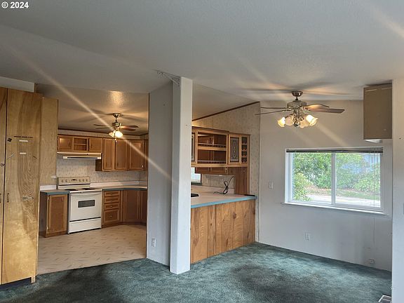 This 1994 double-wide manufactured home is situated in an all-ages park and features an oversized two-car garage. The home includes two bedrooms, two bathrooms, a laundry room, and high ceilings. It's in a prime location close to schools, shopping, and more. Space rent will be $700 a month to include garage.