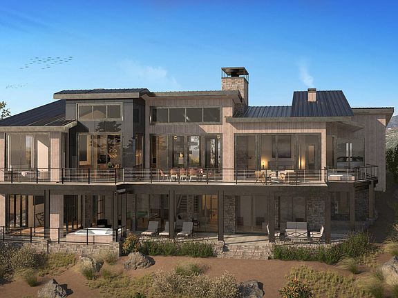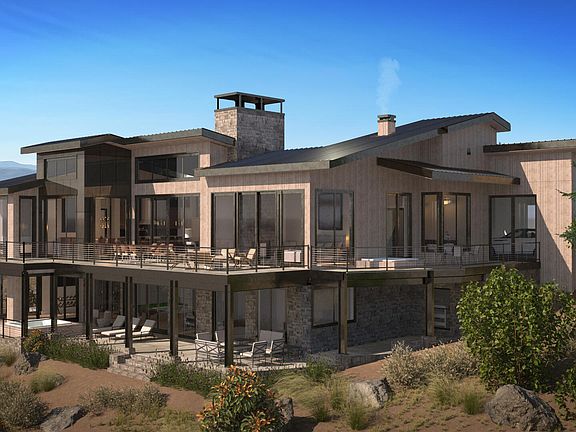 Vitruvius Design+Build presents its latest new construction offering, Teleios (tel'-i-os). Driven by their principles of firmitas (strength), utilitas (utility), and venustas (beauty), this net-zero designed home combines steel, wood, stone, and glass to inform panoramic views of Deer Valley and Mayflower Mountain while providing functional flow and seamless indoor/outdoor living for all four seasons. Teleios is replete with the luxury inclusions of a modern mountain dream home. The main level features a master wing that boasts a private garage/entrance and balcony with an outdoor soaking tub. The main level showcases an open floor plan with an expansive kitchen, dining room, and living room with panoramic glass sliding doors that advance onto over 1,000 SF of exterior living space. The informal lower level features a health and wellness wing with yoga room and sauna, an open living room, billiards room, bar, private office with steel and glass divider wall, bunk room, and two additional en suite bedrooms. Luxury finishes include a hand carved marble tub in the master bathroom, Brazilian walnut exterior flooring, exposed steel beams throughout, and Wolf/Subzero appliance package. Three minutes to Deer Valley's Jordanelle gondola and five minutes to the Jordanelle Reservoir, this home is four season resort style living at its best. Additional features of the SkyRidge development include an equestrian center, a golf academy, clubhouse/pool, and miles of horse/biking trails.