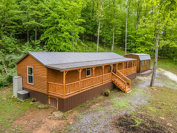 Welcome to your serene retreat in Hillsboro Kentucky! This charming cabin sitting on 4.5 wooded acres boasts two beds, one full bath, and 832 Square feet of living space. Inside features knotty pine tongue and groove walls/ceilings, along with gray vinyl plank flooring. The kitchen comes with all stainless steel appliances and washer/dryer combo will remain with the property. Outside, there is plenty of opportunity to make this place yours whether that be adding a fire pit area in the front or a garden overlooking the small pond. The property also includes a recently added 10x24 shed with two loft areas, a small kitchenette, and a partial bathroom. Whether you're seeking a peaceful getaway, an income generating Airbnb, or a forever home, this cabin is the one for you. Only 25 minutes from downtown Morehead where you will find all of your grocery and personal shopping needs as well as St.Claire Hospital.. Additional things done to the cabin include: