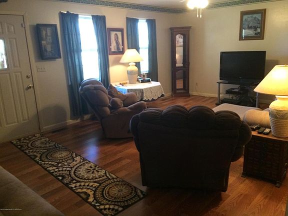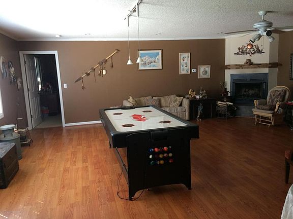 Beautiful country setting with a 4 BR 2BA home nestled among trees on 2.4 acres. Large family room (23'X23') with fireplace and a living room. Front porch and a patio off family room plus a fenced back yard area. Nice 11x16 1 1/2 story outside storage bldg. Carpet just replaced with wood laminate and new wood look linoleum in kitchen. Reduced to $150,900