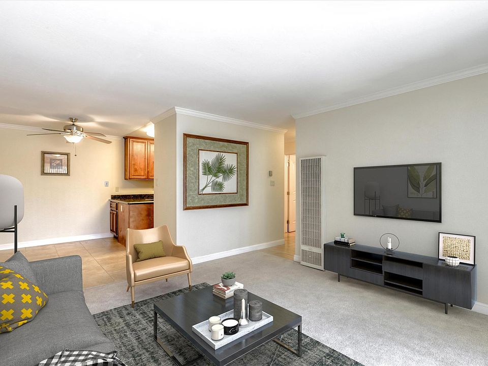 Lovely updated 1 bedroom. Elevator access. No stairs. This condo has slider door access to private balcony with views overlooking the swimming pool court yard area. Nice and quiet! Kitchen and bathroom is nicely updated! Both have granite counter tops and newer cabinets with many cupboards and drawers. Great condition. Secured building with one secure covered parking spot. Elevator access and laundry room on the same floor. Easy access to freeways, and less than one mile from BART, Todos Los Santos Plaza, Brenden theater, dining, and shopping! One year lease or more preferred. Water, trash, 1 secured gate access covered parking spot included.