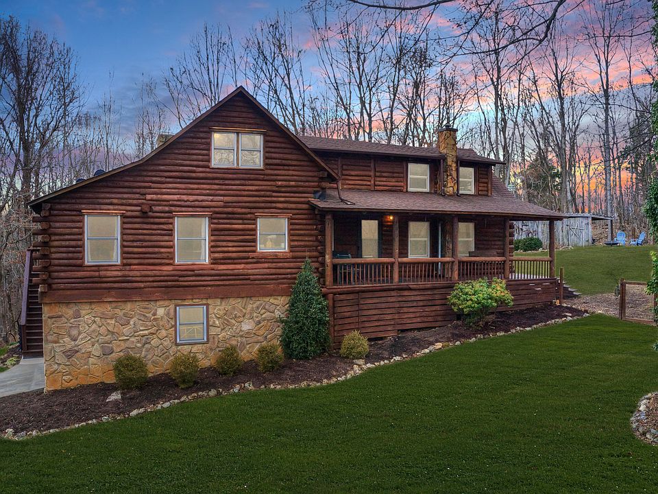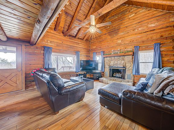 This charming well maintained log cabin has breath taking views, a serene setting and privacy galore. The interior of the home features cathedral ceilings, gas log fireplace, spacious bedrooms and a loft that can easily be converted into a 3rd bedroom. Full walk out basement has partially finished room that can easily be finished as an additional bedroom. There is a creek located on the property including a beautiful waterfall.