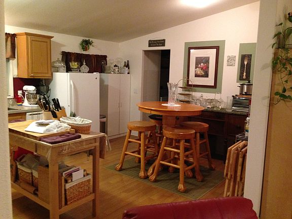 Very nice manufactured home in Park, with Huge Kitchen/Dining Room with open floor plan, vaulted ceilings, tape/texture throughout. Full Length Carport Attached (able to park 2 cars underneath), awning above front door & awning above side door!