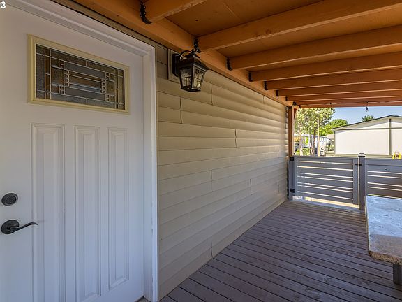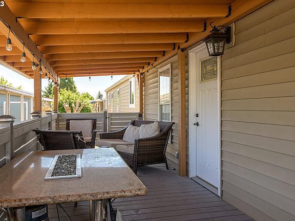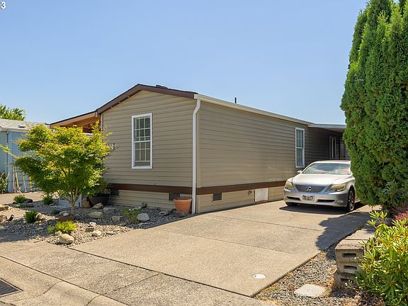 This beautifully remodeled home feels nothing like a manufactured home! Move in ready. Featuring 2 bedrooms and 2 full bathrooms, the spacious master suite includes an extended area perfect for a small third bedroom or office. The kitchen boasts custom cabinetry, granite countertops, a large island ideal for entertaining, and brand-new stainless steel appliances. Stay comfortable year-round with an energy-efficient heat pump just installed last year. Outside, enjoy the newly covered deck—perfect for Oregon’s climate—plus ample parking and a large deep carport. The yard is very low maintenance. Located in a well-maintained family park with fantastic amenities, including a pool, hot tub, sauna, gym, party room, pool table, and multiple playgrounds. Space rent is $879 per month. Don't miss this incredible opportunity—schedule your showing today!