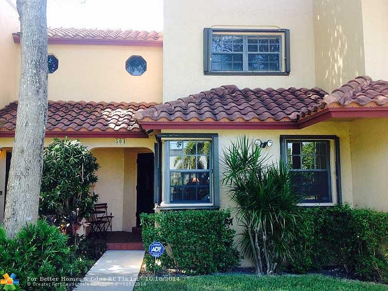 Beautifully remodeled two story 2/2.5 townhouse in secret oasis with pool, clubhouse, natural spring with koi and turtles. Spacious living, dining, bonus den/home office. Custom kitchen with wood cabinets, stainless steel appliances, private lush terrace. Two master suites on 2nd floor. Great location, walking distance to Wilton Drive, nightlife, shopping, dining. Basic cable included in maintenance, pet friendly. EASY TO SHOW