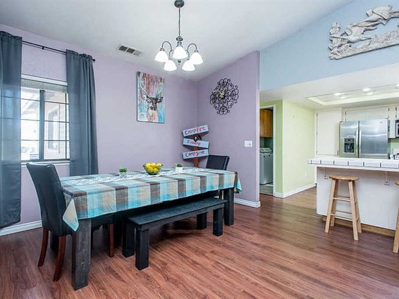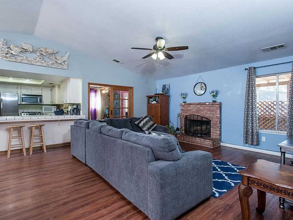 Fantastic family home! This 3 bedroom, 2 bath home has tons of extras! The open floorplan of the living area, with a beautiful brick fireplace in the living room, will bring your family together. Laminate flooring has been installed throughout the main living areas and bright white cabinetry makes the kitchen with bar seating feel fresh and clean. All three bedrooms are spacious, and the master bath features double sinks. A bright bonus room offers flexible extra space. The big back yard features a deep covered patio, gated RV parking, two large storage buildings, and a fenced play area! This home also features a water softener and a new roof.