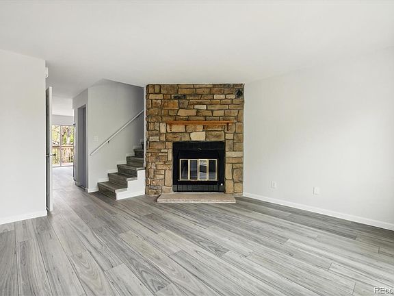 Centrally located and Updated 2Bed/ 2 1/2 Bath, End Unit Townhome for under $375,000! Lower HOA fees compared to many other complexes. Main level deep 1- Car attached garage, Laundry, Storage Room, and access to the fenced patio. Super clean and move-in ready with a remodeled kitchen with New Cabinetry, Stainless steel appliances, nook for a kitchen table, adjacent Powder Room, and door to the upper level deck that overlooks the Greenbelt! Grab your coffee and cozy up to the large family room with wood burning fireplace. On the upper level you will find two spacious bedrooms, each with a private 3/4 bath. New laminate floors throughout. Windows replaced in 2016. Quick Move-In!