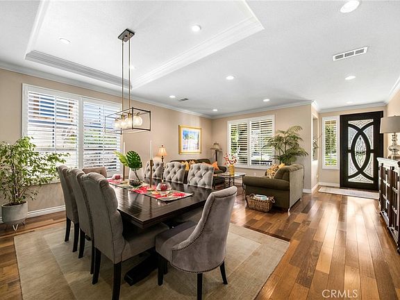 Gorgeous Eagle Glen home with city/mountain views! This home shows like a model home! You enter this home through the custom front door, to the living room with hardwood floors, plantation shutters to the formal dining room with custom wall covering. The large kitchen has a breakfast bar, granite countertops, stainless steel appliances, wine rack and nook area -- all with views. The oversized family room is just off the kitchen -- perfect for entertaining with custom built-ins and fireplace. There is a downstairs bedroom, full bathroom downstairs and a laundry room with a sink. You enter the upstairs through the wrought iron staircase, huge bonus room/game room, bar area just off the bonus/game room. The primary bedroom has sliding glass doors out to your private balcony with city/mountain views -- perfect for your morning coffee or wine in the evening. The primary bathroom has double sinks, a soaking tub and separate shower. There is His and Hers walk-in closet just off the primary bathroom. There is a jack and jill bathroom between two other bedrooms with a fifth bedroom next to the fourth bathroom. There is also lemon, lime, peach and olive trees and grape vines! All this and located in the prestigious neighborhood of Eagle Glen, where your kids can walk to school, Eagle glen golf course is just a chip shot away, Eagle glen park is around the corner and all the restaurants and shops of Dos Lagos are just down the street! See this one today as it will be gone tomorrow!