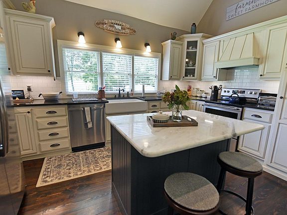 AN EYE CATCHING HOME BY ANYONE WHO PASSES IT. Gorgeous old farmhouse that has been restored with new HVAC, awesome new kitchen with granite, stainless steel appliances, and island. New insulation, wiring, pex-pipe (no freeze) plumbing, and metal roof. Three bedrooms and 2.5 baths. Wood floors. Large laundry/mud room with plenty of room for office desk. Master suite on main floor with walk in closet and beautiful bath with claw foot tub and separate shower. Two bedrooms upstairs. Vaulted ceilings in several rooms. Wrap around porch with sun deck on back with some mountain view and rolling hills of pasture. Great garden spots or entertaining yard. Storage building. Magazine perfect and a real pleasure to show.
